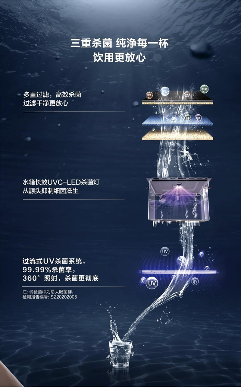 · 材质安全: 涉水部件均采用食品级材质,从内到外,杜绝二次污染风险。